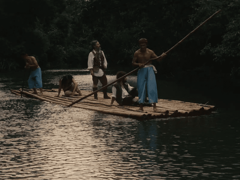 Los vapores de esté afán van intoxicando a Magallanes a medida que avanza la penosa travesía. En su delirio, se enfrenta a todos y a todo. Esgrime la palabra de Dios, pero no duda en pedir a un sacerdote que vulnere el secreto de confesión y delate a los supuestos conspiradores. Pregona misericordia mientras obliga a un condenado a decapitar a otro. Llega un momento en el que olvida por completo cuál era el objetivo de su misión. Solo importa la obsesión por la obsesión. El personaje se alinea entonces con otros grandes obsesos de la historia del cine: Fitzcarraldo, Aguirre, el desesperado buscador de oro de El tesoro de Sierra Madre o los gánsteres que persiguen al Halcón maltés en la película homónima, esa estatuilla invaluable porque está hecha “de la misma materia que los sueños”, como ese afán desquiciado de Magallanes, también un sueño en sí mismo.